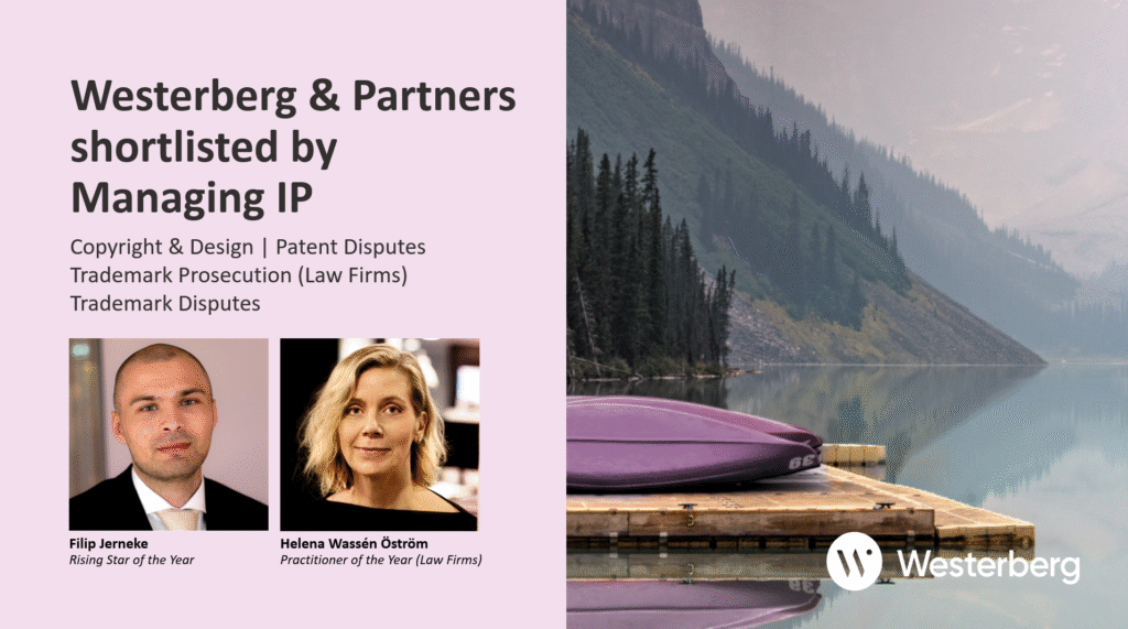 Westerberg & Partners is most happy to announce that the firm has been shortlisted as Firm of the Year in Sweden under the four categories Patent Contentious, Trademark Contentious, Trademark Prosecution and Copyright & Design by Managing IP 2021....
