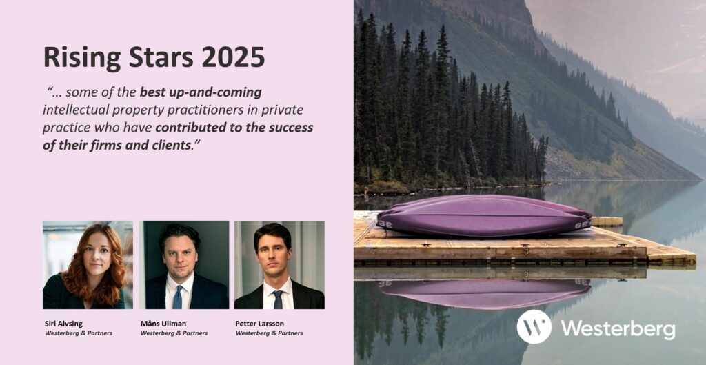 We are very pleased to announce that Siri Alvsing, Måns Ullman and Petter Larsson have yet again been ranked Rising Stars by IP STARS (Managing IP’s rankings publication) and very proud indeed that Westerberg & Partners is the only Swedish law firm to have as many as three Rising Stars in the team!